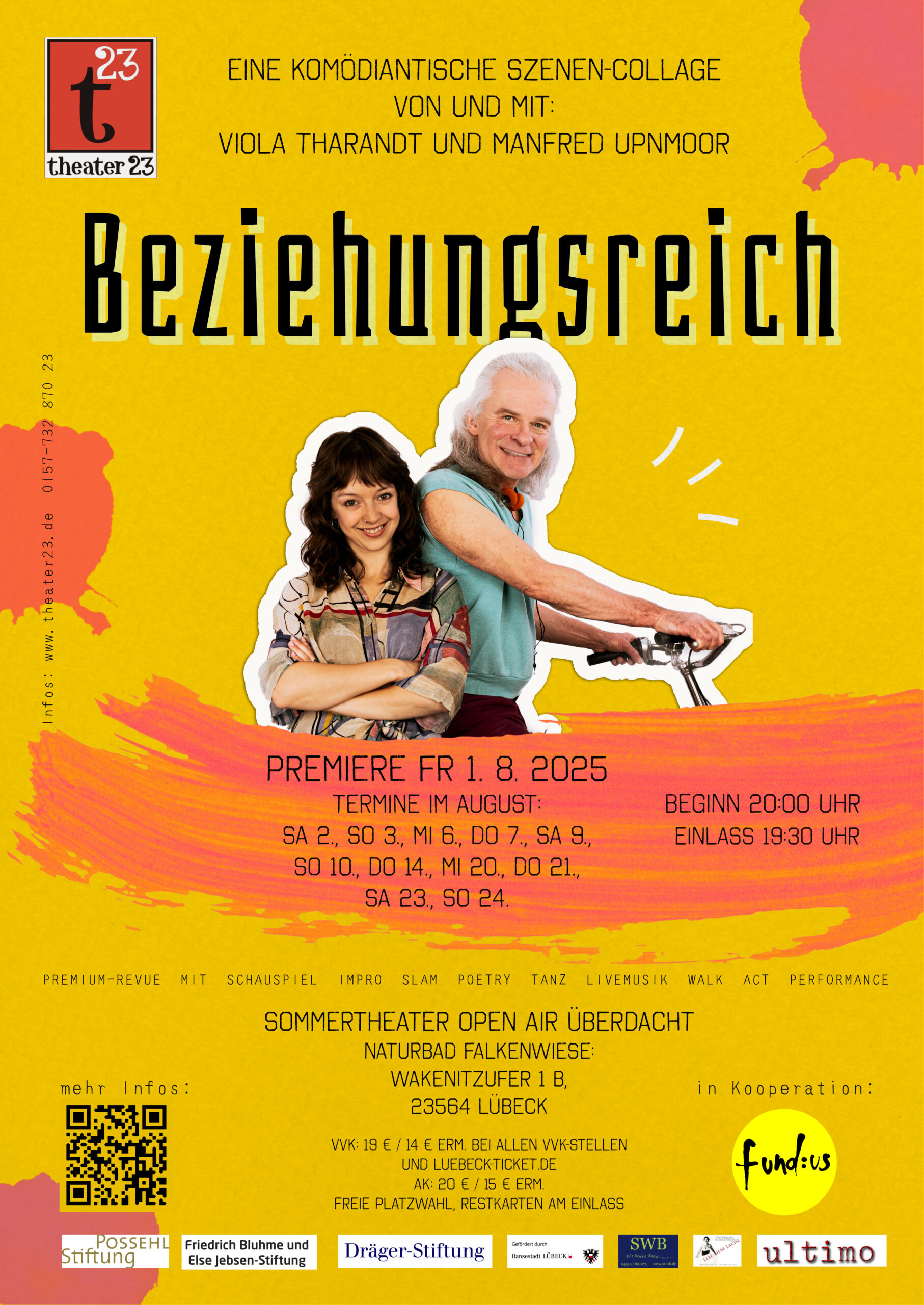 Tagesaktuelle Infos, Anfahrtbeschreibung etc. unter www.theater23.de, Handy-Hotline: 0157 – 732 870 23.